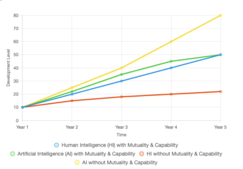 When AI races ahead of HI, organisations over-invest in technology that people cannot fully use, eroding trust and wasting resources. When HI and AI are developed together, on a foundation of trust and capability, value and confidence grow side by side.